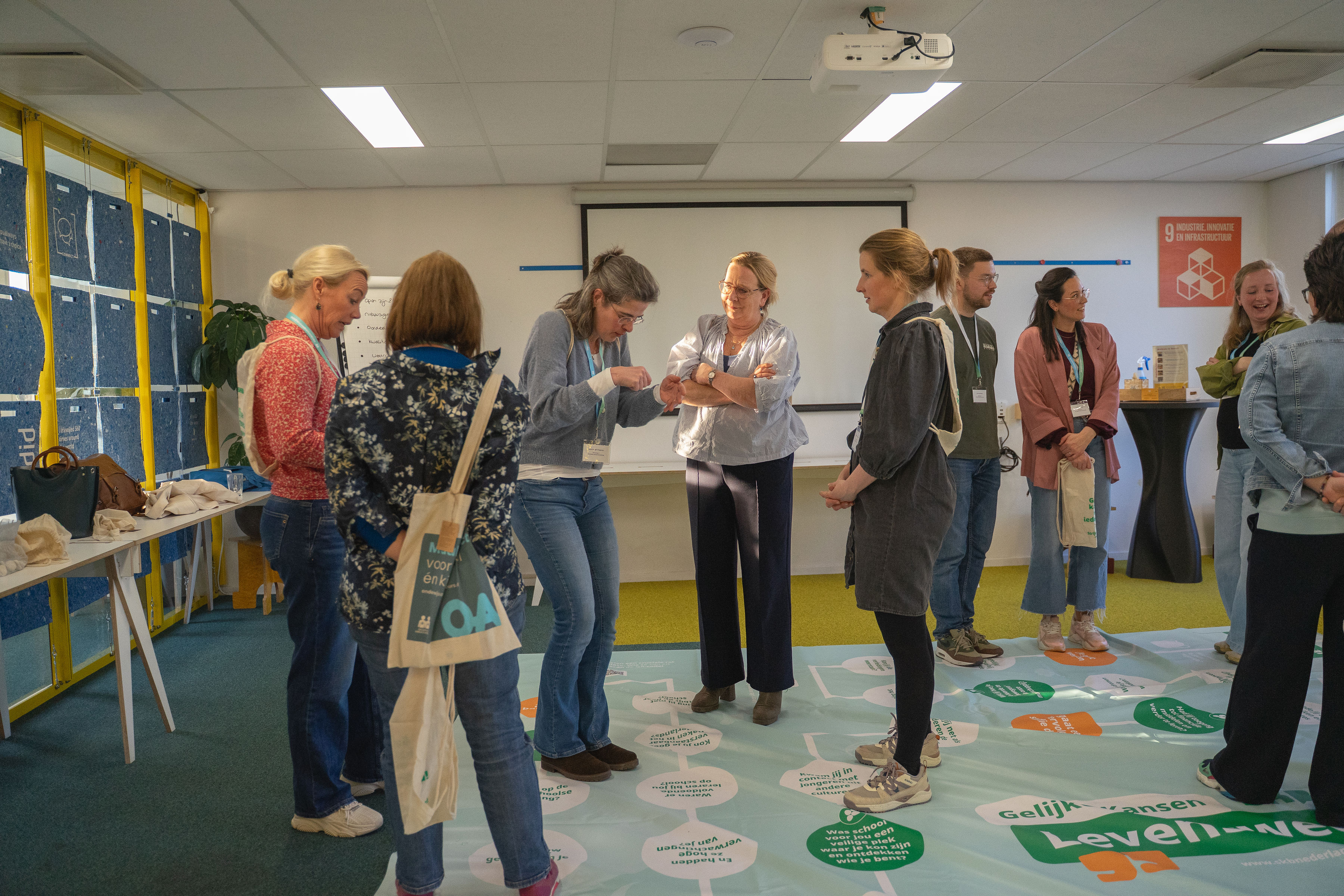 In de workshop ‘De gelijke kansen levensweg’ van Anoek Vrieling (SKB Nederland) stapten deelnemers letterlijk in de levensweg van een ander én van zichzelf. Met een rugzak op hun rug doorliepen zij verschillende levensfasen en ervaarden hoe achtergrond en omstandigheden kansen kunnen vergroten of juist beperken. Wat neem je mee in jouw rugzakje? En wat betekent dat voor hoe je naar anderen kijkt? Een paar ruimtes verderop werd hier nog over nagepraat. “Ik werd echt aan het denken gezet,” vertelde iemand. “Mijn eigen rugzak is dan misschien niet zo vol, maar je staat er nauwelijks bij stil dat dingen die voor mij vanzelfsprekend waren, dat voor anderen helemaal niet zijn.”